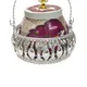 Elegant Silver Plated Dry Fruit Basket & Hand-Painted Metal Jar Set (Maroon..More