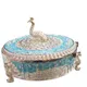 Elegant Design – Beautifully crafted with a detailed peacock motif on the lid and intricate carvings on the sides, enhanced with turquoise enamel work for a rich and traditional look.